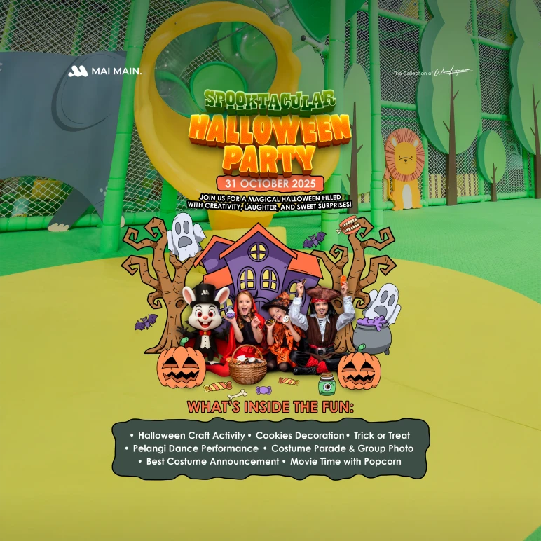 Throughout the week, guests can enjoy daily Halloween-themed activities including Trick-or-Treat games, hands-on crafts, costume corners, and candy galore. Each corner of Mai Main will be filled with festive charm and creative fun, offering an enchanting space where imagination runs wild.