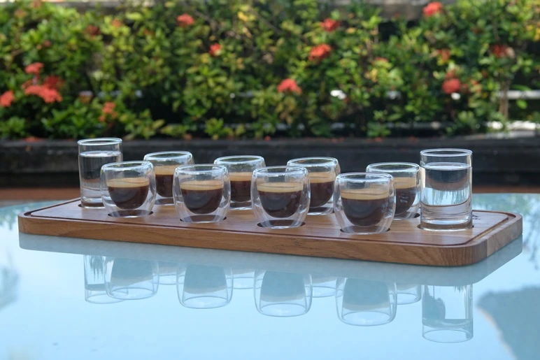 In the afternoon, we visited Java Hut, a cozy open air cafe overlooking the lagoon and Indian Ocean. Here, we experienced Nusantara Coffee, served in eight small cups representing different regions of Indonesia, including Banyuatiz, Bali K, Bali Tirta, Aceh, Flores, Sulawesi Toraja, and Papua. Each coffee offered distinct characteristics ranging from fruity and aromatic to bold and bitter. Our personal favorite was Papua, with its fragrant aroma, pleasant bitterness, and bold fruity notes, paired perfectly with homemade chocolate cookies.