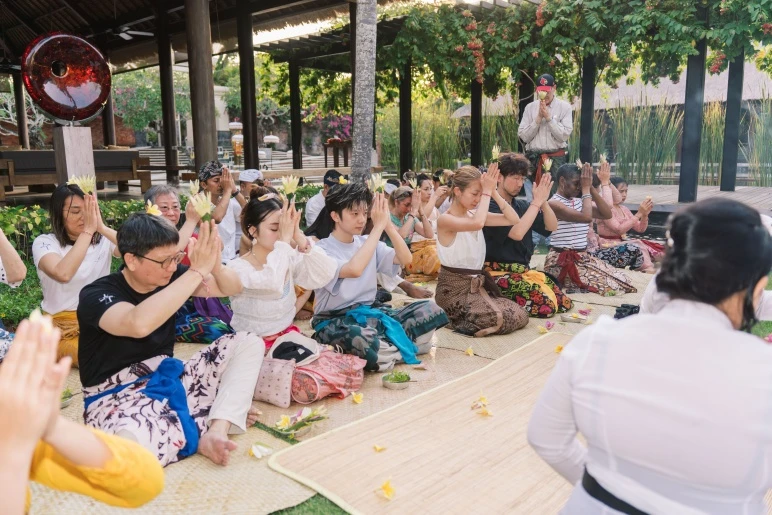 The highlight of the evening was the Balinese blessing ceremony, led by the resort priest. The ritual offered profound spiritual and emotional benefits. Taking part in this ritual provided a meaningful way to connect with spiritual and cultural traditions, while nurturing emotional balance and a deeper sense of harmony with both oneself and the surrounding environment. The evening concluded with a sumptuous Balinese dinner at the resort’s iconic Candra Suriya Gate, accompanied by captivating dance performances that celebrated the vibrant culture of Bali.