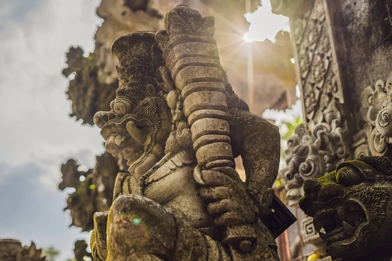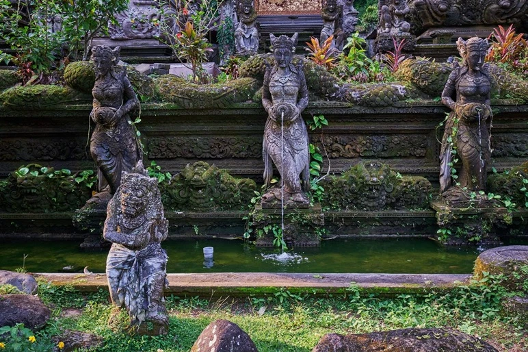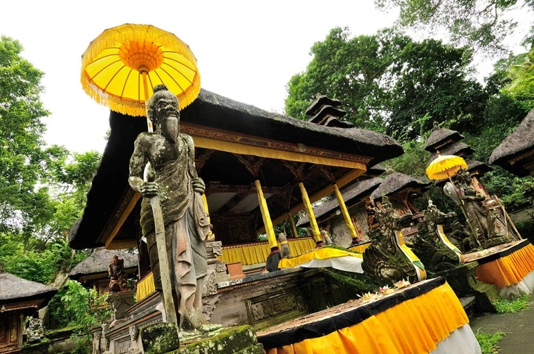 Local oral traditions speak of two giants who once lived in caves near Tukad Yeh Wos Kiwa and disrupted sacred ceremonies by preying on villagers. Their defeat, still remembered through physical landmarks like caves and stone relics, adds a mythic layer to the temple’s history and reinforces the area’s perceived spiritual power.