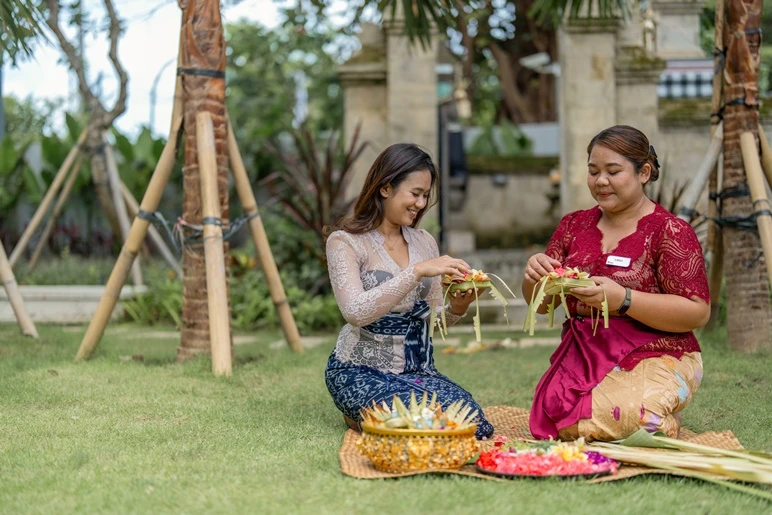 A small tulas pandan shred was placed at the center to represent balance, followed by incense, believed to carry prayers upward. Simple, peaceful, and beautifully explained, the experience offered a warm and meaningful glimpse into the daily spiritual life of Bali.