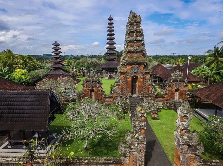 The architecture of Bongan Village creates a powerful backdrop to the Mesuryak ritual. Family compounds feature traditional gateways that frame the offerings while shrines stand ready to receive prayers. The temples at the heart of the ceremony reflect classic Balinese craftsmanship with carved stonework tiered shrines and open courtyards that symbolize the meeting point between the human and divine realms.