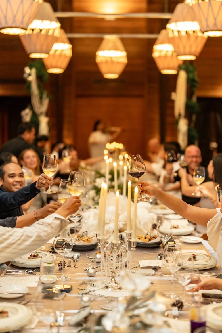 The violinist then led everyone out to the terrace, playing We Wish You a Merry Christmas as guests transitioned into the closing celebration. The night ended with relaxed mingling at the terrace bar, festive cocktails in hand, as guests danced lightly to live music under the tropical night sky.