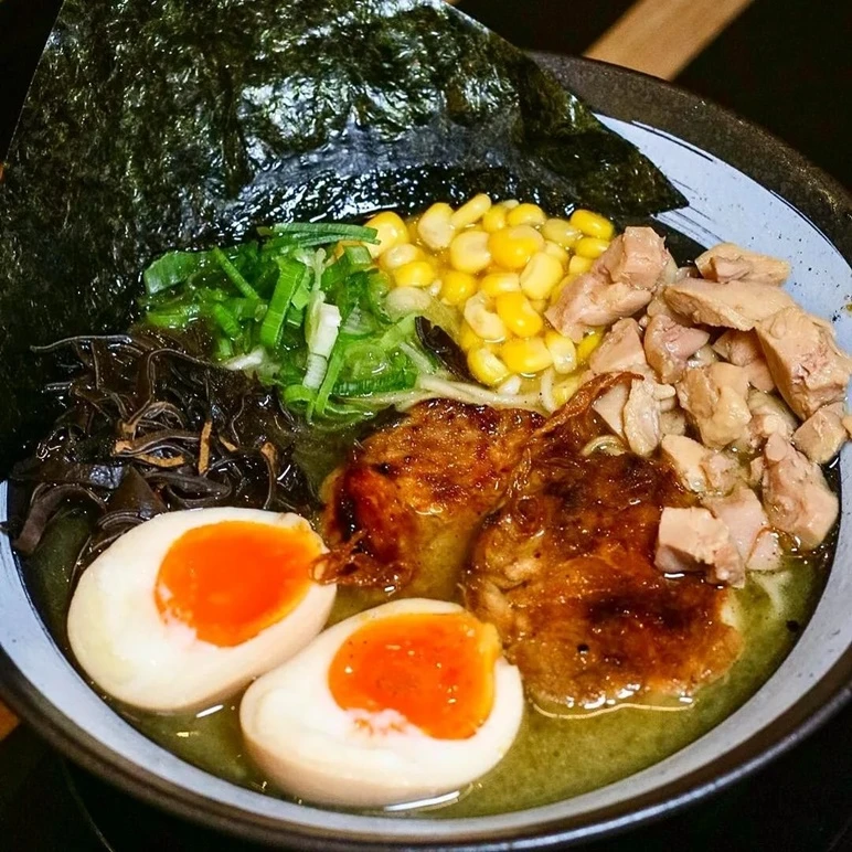 Sijiro Bali proves that halal ramen can still be truly authentic. Its signature chicken broth is handcrafted and slow cooked for 24 hours, resulting in a light yet flavorful base offered in original, double flavor, and spicy versions. The menu also includes vegetarian friendly options with shiitake mushrooms, fresh daily oysters, and a selection of yakitori skewers. Set in a peaceful garden with koi fish, Sijiro is especially popular with families and diners looking for a relaxed atmosphere.
