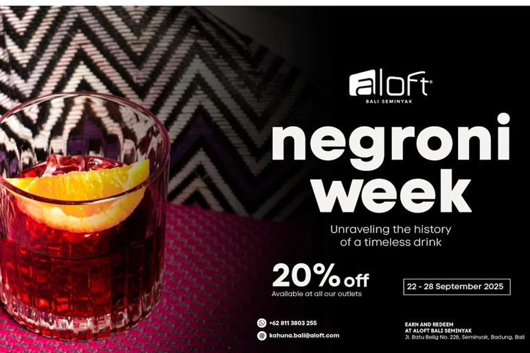 Playful vibes meet a modern twist at Aloft Bali Seminyak. From 22 to 28 September, every outlet in the resort will join the Negroni party with a special 20% discount on all Negroni creations. Guests can also earn and redeem Marriott Bonvoy points while enjoying the celebration. Known for its upbeat energy, bold interiors, and lively social scene, Aloft makes the perfect backdrop for clinking glasses with friends while exploring inventive spins on the classic cocktail.