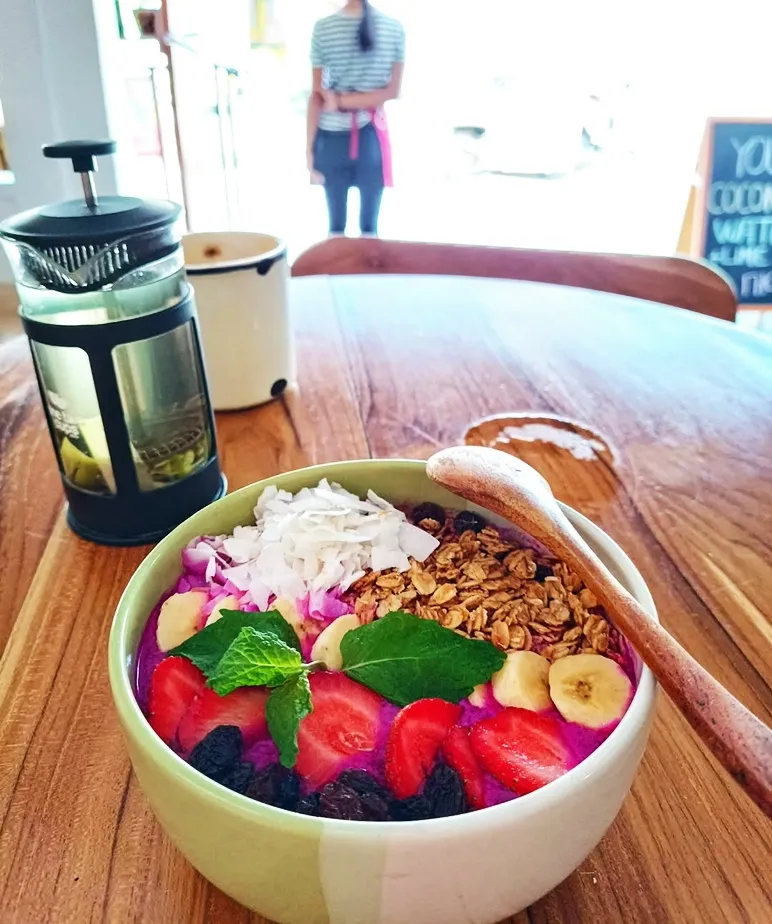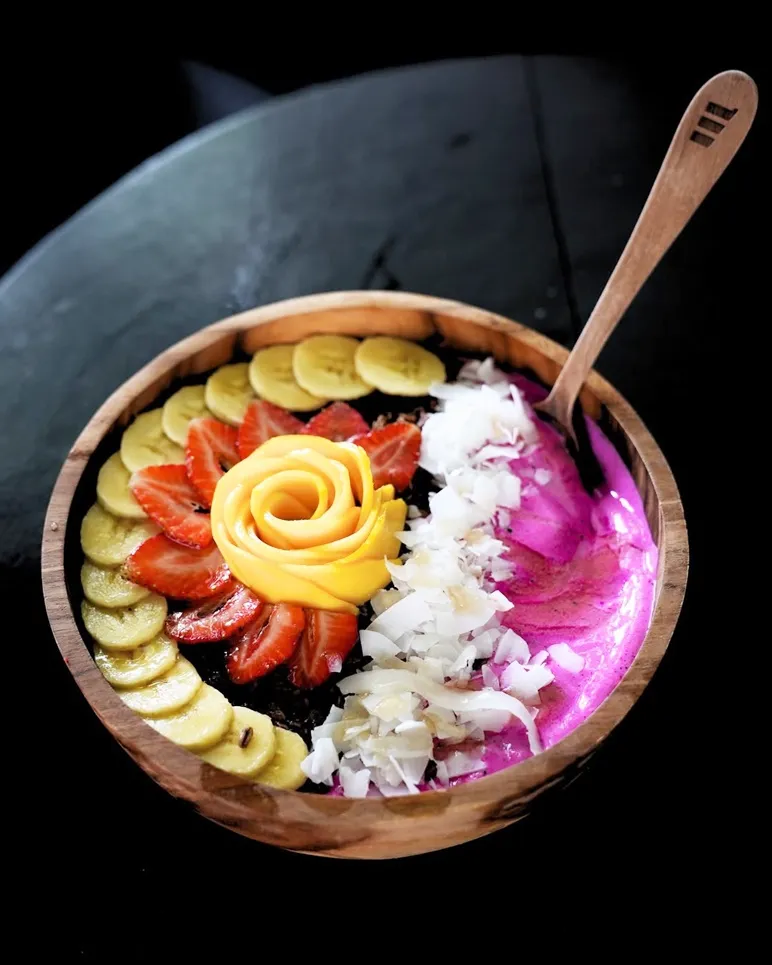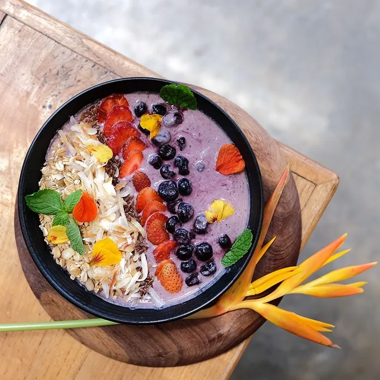 Green Guru is a long time go to for Bali bowl lovers. Known for vegan friendly recipes and their own line of granola, peanut butter, and nut mixes, the brand has grown into a cult favorite. Guests often fall deeply in love with the peanut butter bowl, while others swear by the açai bowl that finally tastes like more than blended banana. Expect cold, thick textures and beautiful toppings arranged with care. Loyal fans visit year after year because the bowls always impress and the staff always keeps things warm and welcoming.