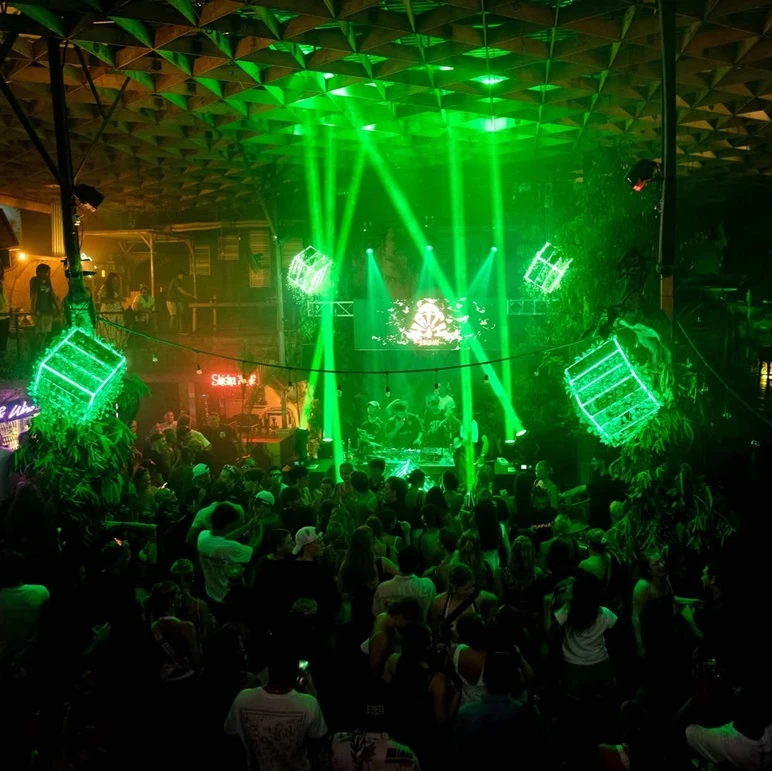 Tabu marks a turning point in the night as Uluwatu’s first true supper club, where dining and nightlife intentionally collide. Arriving here after sunset, the experience begins with a menu that blends Japanese precision and Latin American boldness, served in a space that feels sleek, moody, and designed for momentum. This is not a place where dinner signals the end of the evening. As plates are cleared, the lighting lowers, the music gains weight, and the room subtly shifts from refined dining to late-night energy. Cocktails flow with purpose, DJs take control without overwhelming the space, and the crowd transitions seamlessly from seated conversations to standing movement. You are no longer warming up. You are fully inside the night now.