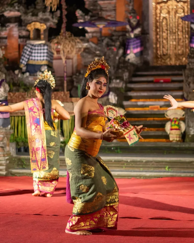 Uluwatu Temple is one of the most renowned venues to witness Balinese dance in Bali, celebrated for its breathtaking scenery and unique vantage location. Perched on a dramatic cliff overlooking the Indian Ocean, the temple hosts the iconic Kecak Fire Dance, a performance that blends haunting chants, dynamic storytelling, and stunning fire displays. Timed to align with the sunset, this spectacle transforms the evening into a magical experience as golden hues illuminate the temple and ocean. The captivating blend of cultural artistry and unparalleled natural beauty makes Uluwatu Temple a must-visit destination for an unforgettable Balinese dance experience.