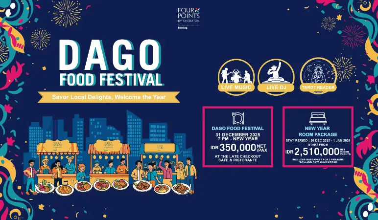 “We’re excited to host a New Year’s Eve celebration that highlights the best of Bandung, its food, its creativity, and its warm, welcoming energy,” said Emi Rusmiati, General Manager of Four Points by Sheraton Bandung. “The Dago Food Festival is designed to bring families, friends, and travelers together for a joyful and memorable start to the year.”