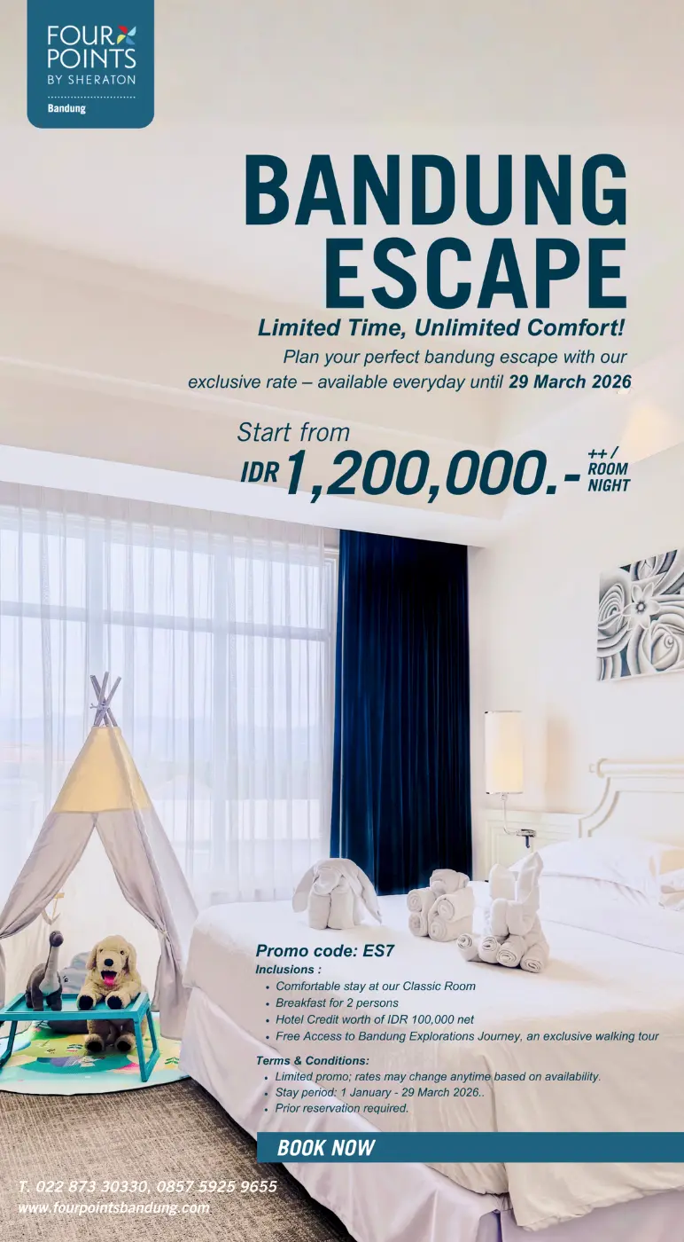 The Bandung Escape package is available with Promo Code: ES7, with limited availability and prior reservation required.