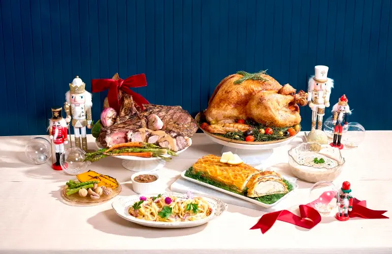 Signatures Restaurant: A Grand Christmas Celebration awaits with a sumptuous spread featuring roast turkey, grilled Tomahawk beef, Norwegian Salmon en Croute, and a delectable seafood-on-ice display. (Christmas Eve Dinner and Christmas Day Brunch & Dinner, priced from IDR 988,000++ per person).