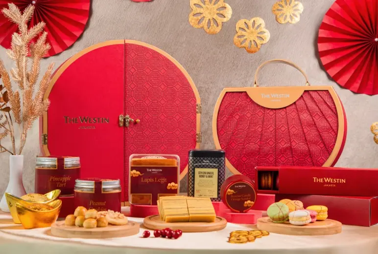 For gift-giving to family, friends and business partners, The Westin Jakarta has prepared The Lunar Opulence Collection, highlighting two sets of hampers. Prosperity Signature Set highlights an elevated Lunar New Year gift featuring Pineapple Tart, Peanut Cookies, The Westin Macaroons, Honey Beeswax Candle, Dilmah Silver Jubilee Gourmet Tea and Lapis Legit for IDR 1,988,000++. For a more heartfelt gift, Lunar Delight is available at IDR 988,000++ including Pineapple Tart, Peanut Cookies and Lapis Legit. Both Lunar New Year hamper collections are elegantly packaged in exquisite red and gold boxes, adorned with oriental patterns. Exclusively for Marriott Bonvoy, Club Marriott and Club Epicure members as well as bank partners, guests may enjoy 20% off the total purchase.