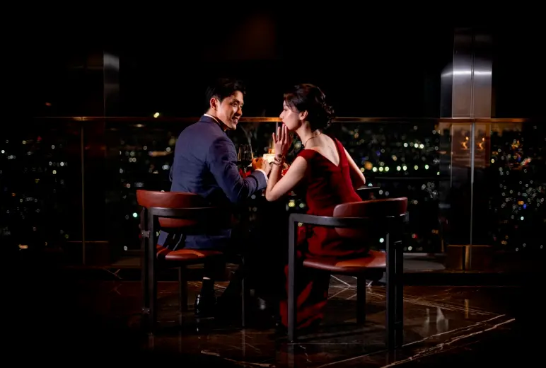 As the sun has set, a seven-course kaiseki dinner by Keyaki Japanese Restaurant awaits on Level 90, facing the city’s shimmering skyline. Before dinner, guests are treated to a full glamour session, including professional hair and makeup styling complemented by BVLGARI collections, followed by a one-hour private photoshoot with a professional photographer to capture the moment.