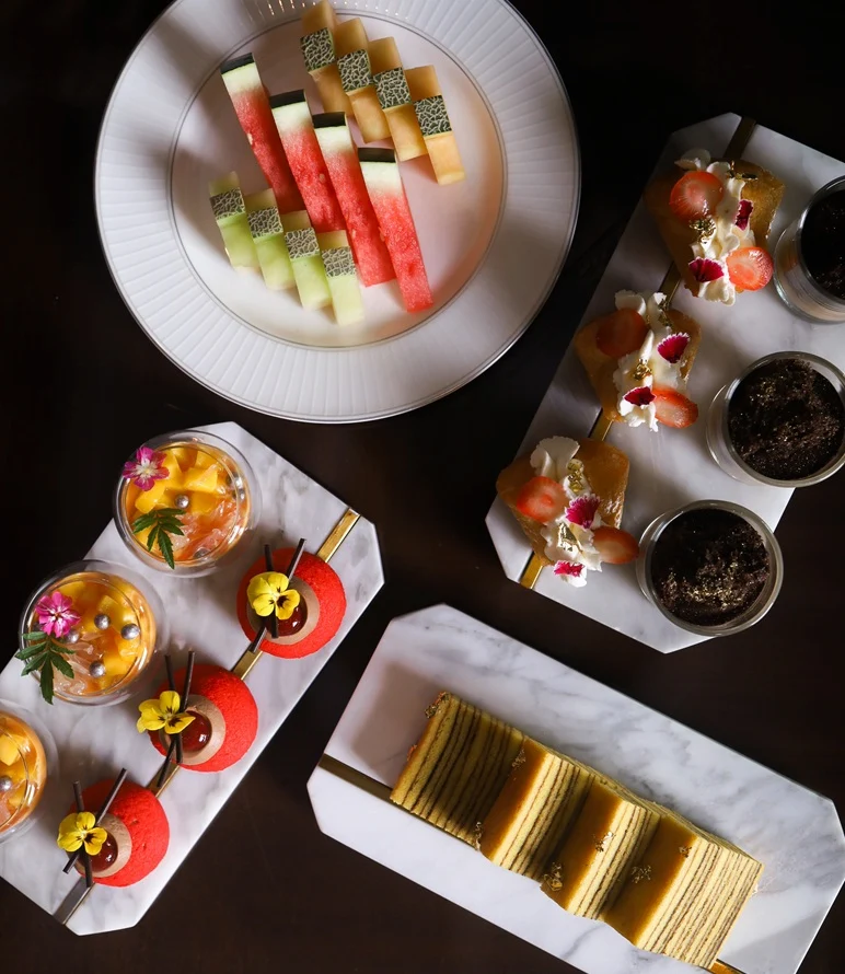 The evening concludes with a delightful finale crafted by Chef Lorenzo, featuring Earl Grey Tiramisu, Mango Sago, Strawberry Baba, Lapis Legit, Chocolate & Raspberry Choux, and many more sweet creations.
