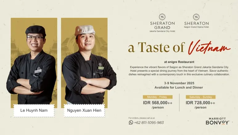 “As part of the Sheraton brand’s global culinary connection, this collaboration reflects our shared passion for cultural discovery through food,” said Ferdian Tobing, Executive Chef of Sheraton Grand Jakarta Gandaria City Hotel. “The ‘Taste of Vietnam’ invites guests to experience the genuine flavors and timeless cooking traditions that make Vietnamese cuisine so loved around the world.”