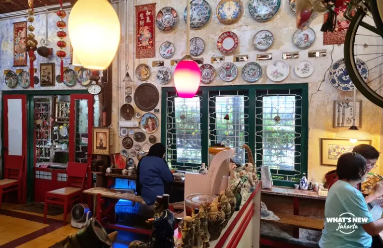 The building itself is intentionally simple, with certain corners left delightfully unfinished, adding to its rustic character. Every inch of Warung Roeken tells a story. Antique telephones, retro radios, faded posters and delicate ceramic crafts line the walls. Betawi and Chinese ethnic touches weave through the décor, creating an atmosphere that feels like a time capsule — classic, warm and quietly poetic.