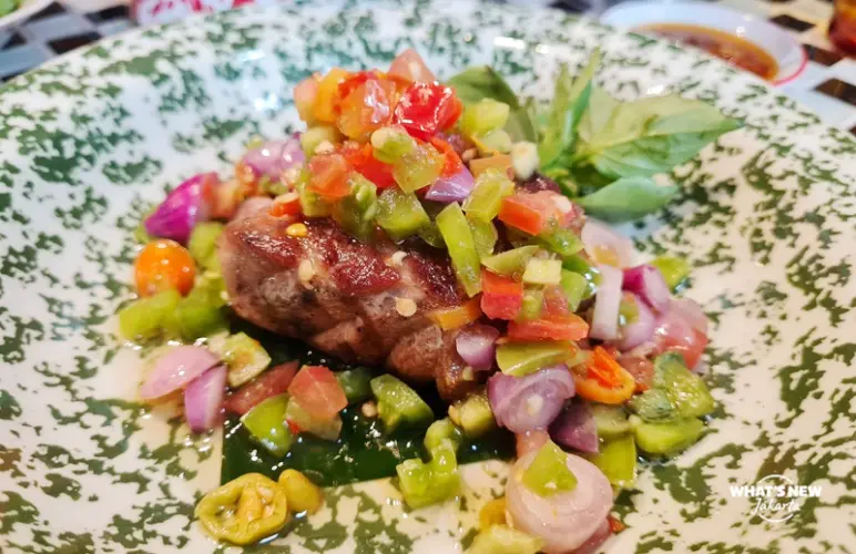 Seafood lovers should zero in on the Tuna Bakar Dabu-Dabu, where flame-kissed fresh tuna is crowned with a vibrant, jewel-toned dabu-dabu relish — a riot of reds, greens and citrusy brightness that adds striking colour to the plate as well as a tangy, spicy kick.