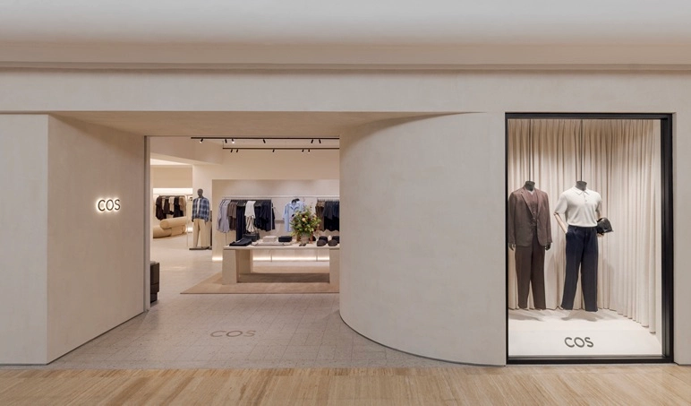 Occupying 501m2, the store launches with COS’ Spring Summer 2026 collection. The exterior facade is finished in clay lime plaster, while inside, a neutral colour palette creates a subtle backdrop that frames the latest ready-to-wear and accessories.