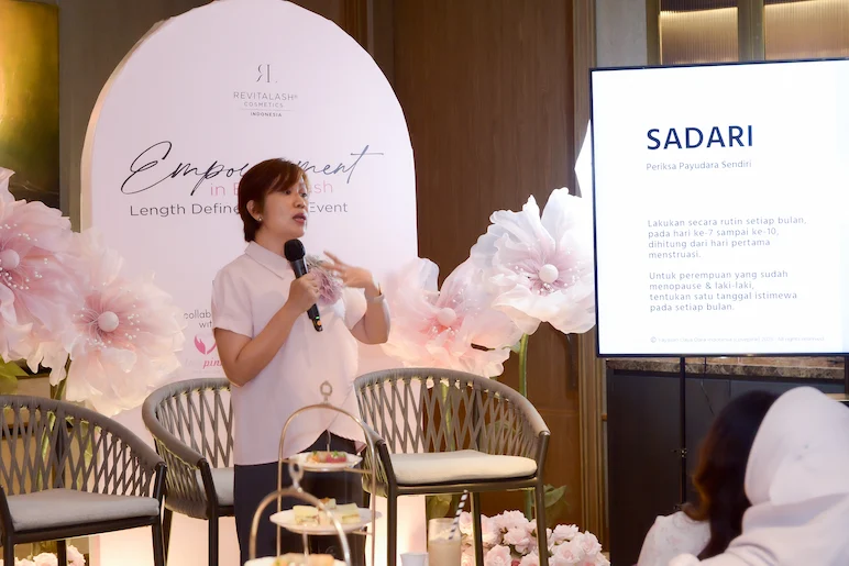 In line with this mission, the event shifted to an empowering educational segment led by Lovepink Indonesia, whose purpose reflects RevitaLash® Cosmetics’ advocacy for breast cancer awareness. Roza Marthalisa shared the story behind Lovepink—how the organization began with two close friends who were both diagnosed with breast cancer and chose to transform their experience into a movement centered around support, early detection, and education.