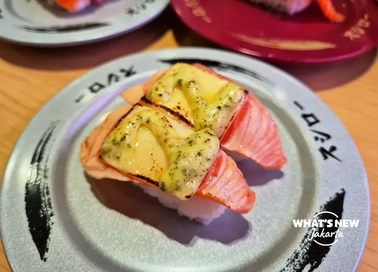 Meanwhile, for those firmly in the salmon camp, Sushiro Indonesia keeps things far from ordinary. The fan-favorite Salmon Cream Cheese Basil—once a seasonal hit—has now secured a permanent spot on the menu at IDR 19,000, delivering a creamy, herbaceous twist that’s hard to resist. Beyond that, the Salmon with Onion adds a gentle kick and extra texture, while the Aburi Salmon with Basil Cheese leans into indulgence with its lightly torched, melt-in-your-mouth richness paired with gooey cheese. For something a little different, the Salmon Kimbap Tsutsumi reimagines the format entirely, wrapping salmon in a playful, hand-held bite that feels both familiar and refreshingly new.