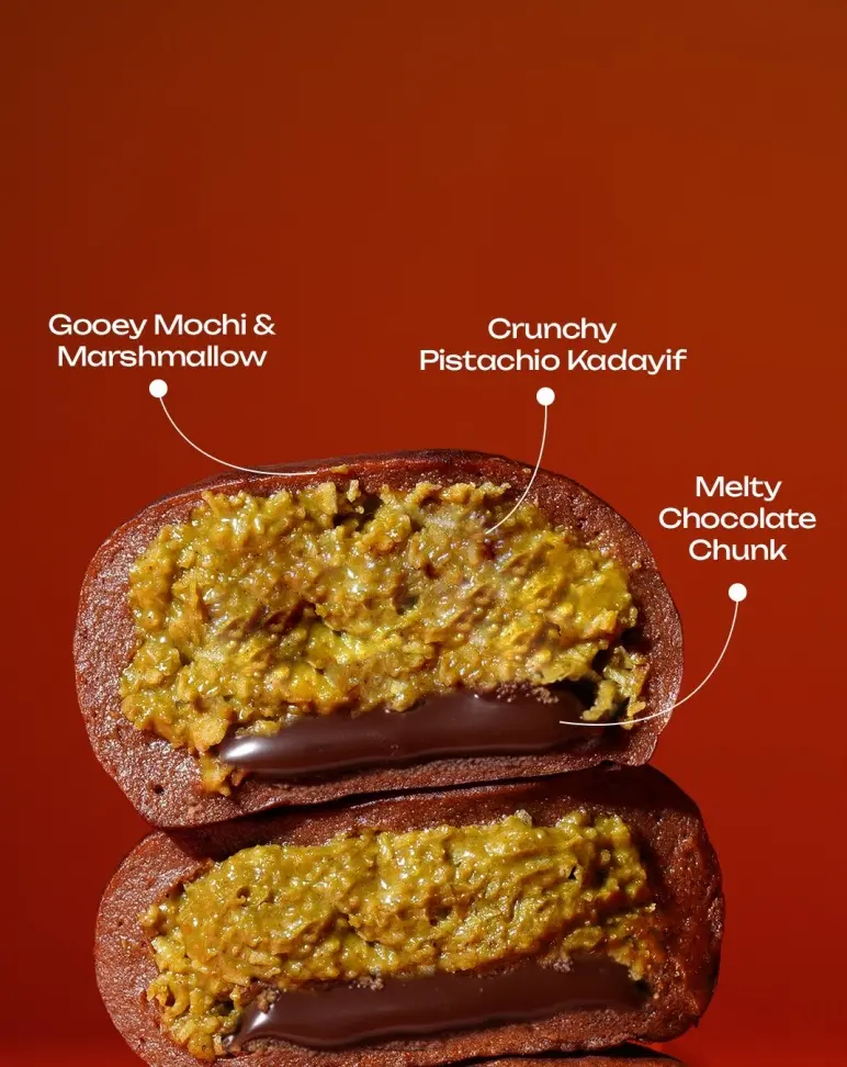 The Dubai chocolate craze isn’t going anywhere—it’s just getting a fresh twist. Enter the Dubai chewy cookie, a viral dessert that’s less cookie, more mochi-like indulgence. Made from chocolate marshmallow and filled with creamy pistachio, it delivers that soft, stretchy bite everyone’s talking about.
