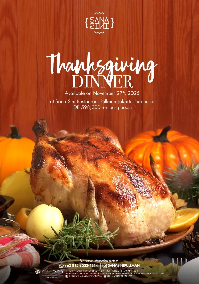 Celebrate the warmth of the season with a special Thanksgiving Dinner on November 27, 2025, at Sana Sini Restaurant, Pullman Jakarta Indonesia.