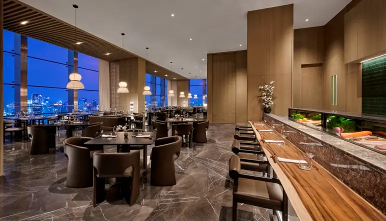 Experience the finest authentic Japanese cuisine at Jakarta’s tallest Japanese restaurant, perched on the 90th floor of Pan Pacific Jakarta. Featuring premium ingredients imported directly from Japan and complemented by the best locally sourced produce, each dish reflects a thoughtful commitment to sustainability—reducing carbon footprint while minimizing food waste. Guests may explore individual dining stations highlighting robatayaki, teppanyaki, and sushi, enjoy carefully curated set menus for lunch, or indulge in an elegant omakase experience for dinner.
