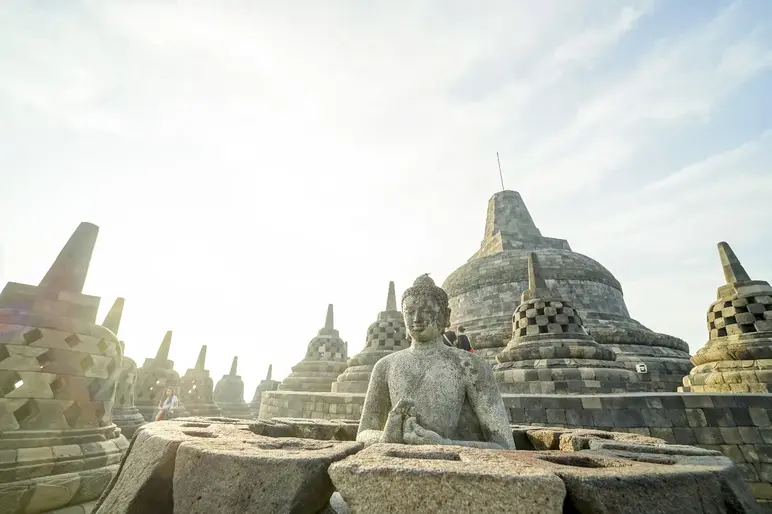 Borobudur is a temple featuring numerous stupas that contain instructions for humans to distance themselves from worldly desires and achieve enlightenment and wisdom, as per Buddhist teachings. Borobudur also has the most comprehensive and extensive collection of Buddhist reliefs in the world.