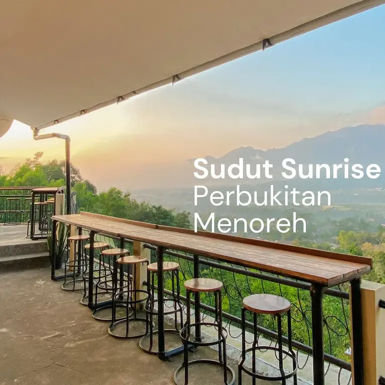 Perched atop the Menoreh Hills, Enam Langit by Plataran offers a spectacular "above the clouds" dining experience with a 360-degree panorama of six majestic volcanoes—Merapi, Merbabu, Telomoyo, Andong, Sumbing, and Prau. Known as one of the most exclusive viewpoints near Borobudur, this rustic-chic destination specializes in elevated Indonesian and international cuisine, making it the ultimate spot for a luxurious picnic breakfast or a romantic sunset dinner overlooking the temple valley below.
