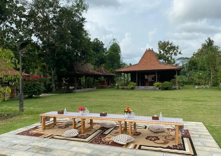 Kebon’e The Omah Resto is a peaceful culinary retreat that offers an authentic Javanese garden dining experience with a stunning backdrop of the Menoreh Hills. Located in the village of Wanurejo, this restaurant is celebrated for its lush greenery and traditional wooden architecture, providing a relaxed atmosphere where guests can enjoy local home-cooked specialties like Brongkos and Mangut Beong. Its expansive outdoor seating area and "back-to-nature" vibe make it one of the best spots near Borobudur to enjoy a scenic, budget-friendly meal while surrounded by the tranquil beauty of the Magelang countryside.