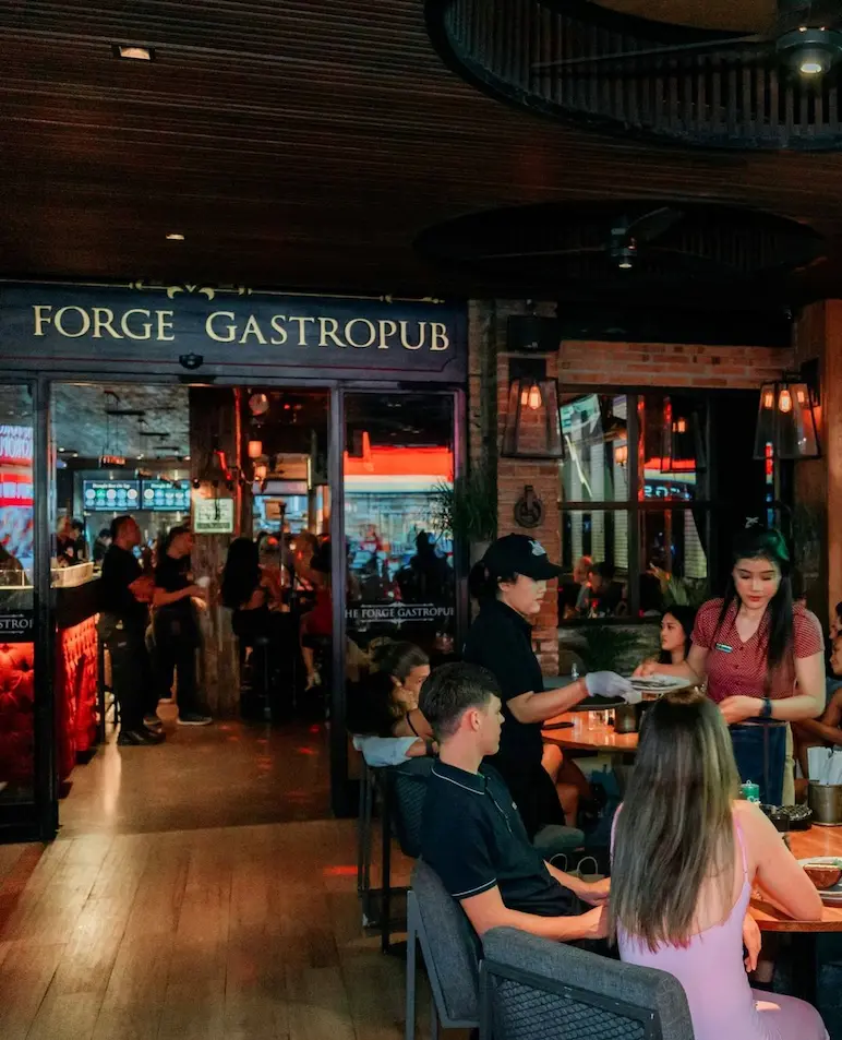 The Forge in Seminyak is a gastropub and sports bar designed to be a home away from home. Known for its rustic pub-style comfort foods, The Forge offers a fine selection of imported craft beers and premium cocktails. The menu is crafted to remind guests of the comforts of home, making it an ideal spot for lunch, watching sports, or enjoying an afternoon ale. Open 24 hours, The Forge is a welcoming spot for any occasion.