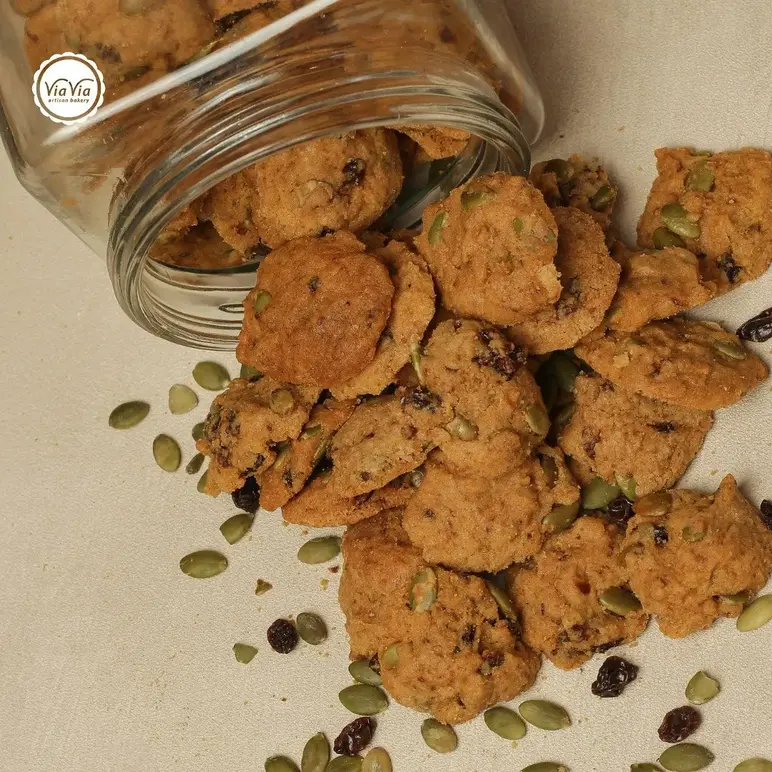 ViaVia Artisan Bakery is widely loved in Yogyakarta for its wholesome, handcrafted cookies that blend natural ingredients with authentic flavor. Known for its artisanal approach, ViaVia offers a variety of cookies that are freshly baked and full of character — from classic butter cookies to creative, hearty options.