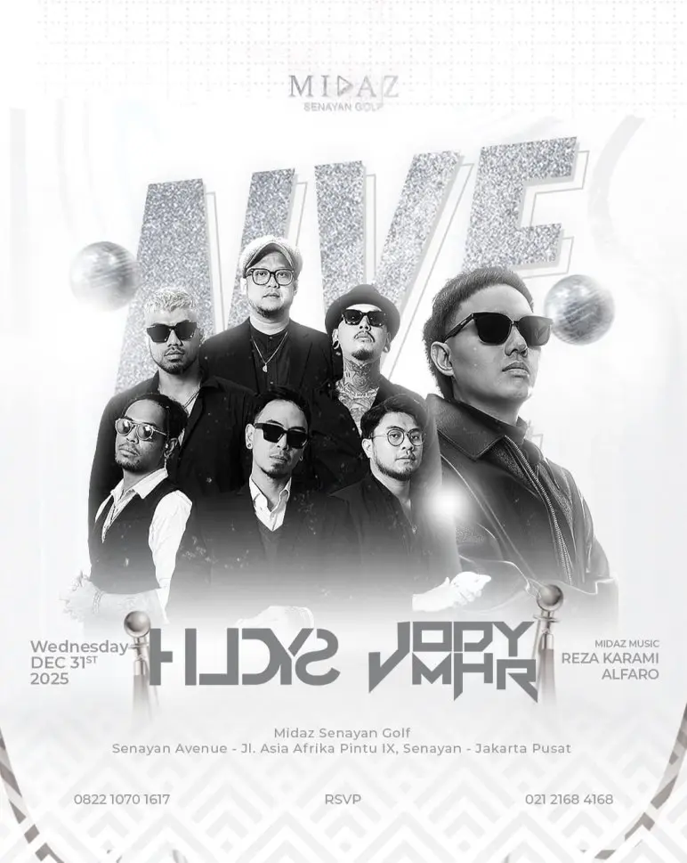 Join MIDAZ Senayan Golf for an unforgettable New Year’s Eve celebration! Featuring Jody MHR and HOLIDAYS. Also performing Reza Karami and Alfaro.