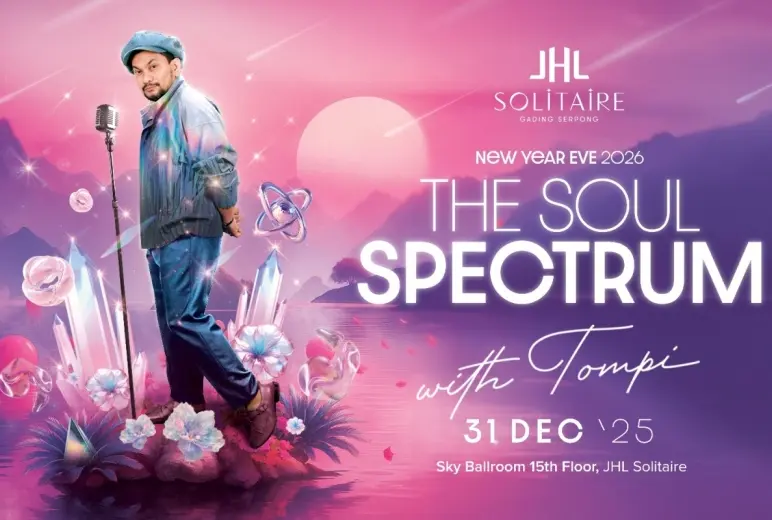 -Tompi: In Full Color — A Night of Magic and Music To bid farewell to 2025, Indonesia’s beloved singer Tompi will take the stage in JHL Solitaire’s Sky Ballroom, offering guests a breathtaking 180‑degree view of Gading Serpong as the city lights shimmer into the new year. His soulful rhythm and warmth will set the tone for an unforgettable night, while a magician weaves wonder throughout the celebration, ensuring every moment sparkles with surprise.