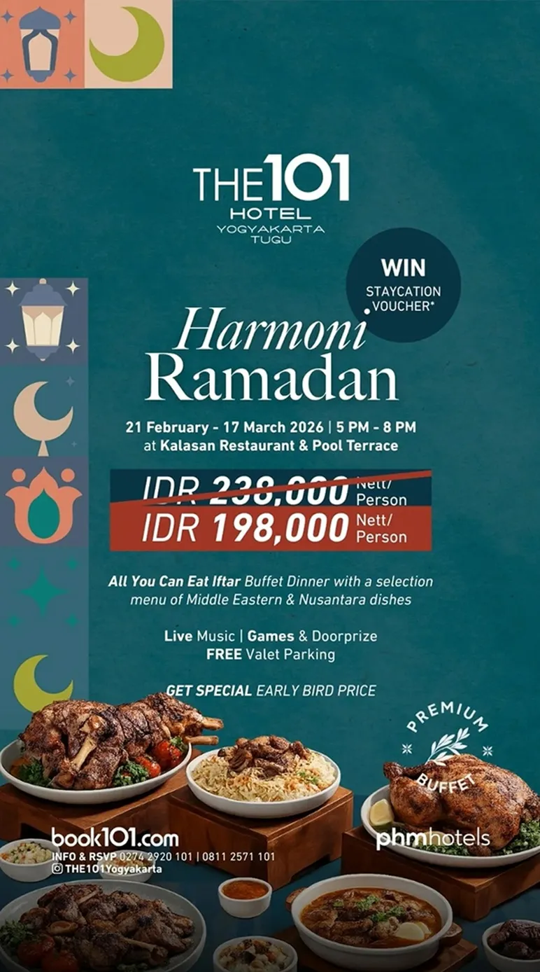 The 101 Tugu presents the experience of breaking the fast through Harmoni Ramadan, which can be enjoyed from February 21-March 17, 2026, starting from 5-8 pm for IDR 198,000 nett/person, at Kalasan Restaurant & Pool Terace.