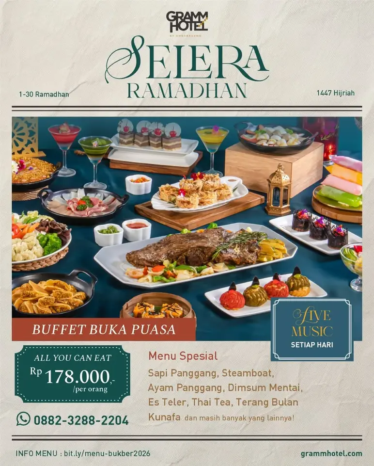GRAMM Hotel presents a special Iftar experience with Selera Ramadhan. This Iftar buffet is available for IDR 178,000 per person.