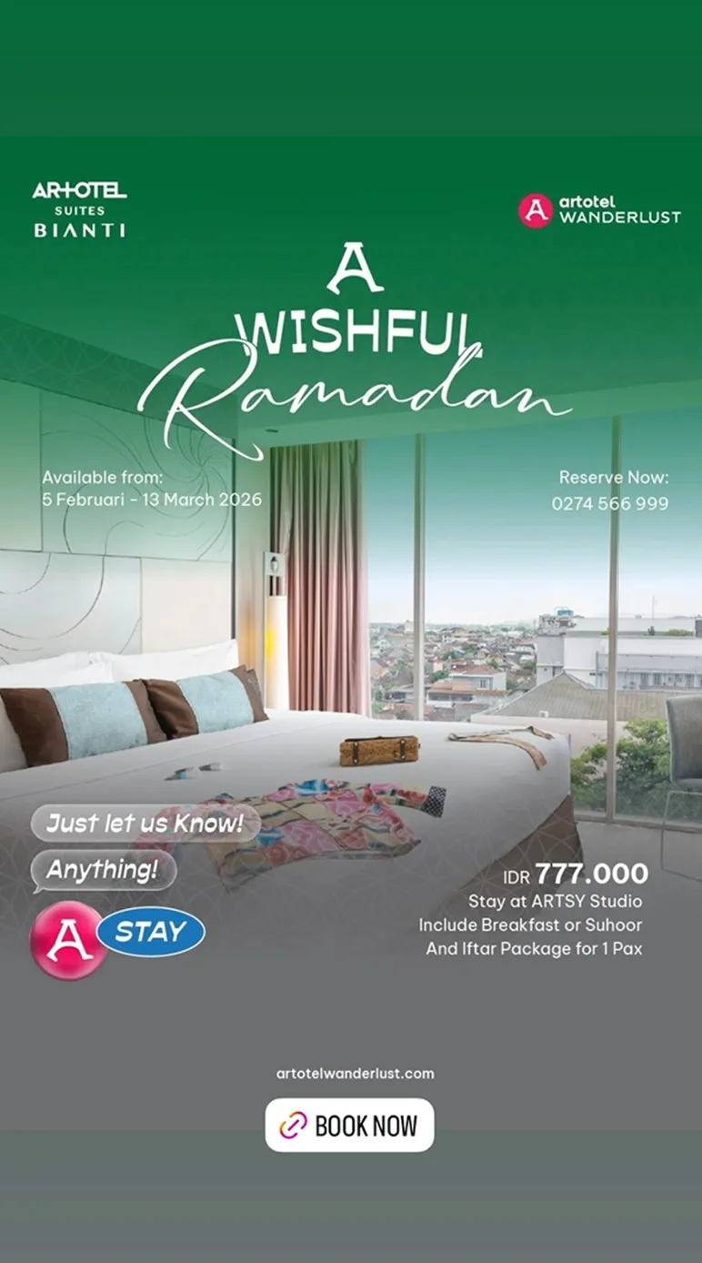 ARTOTEL Suites Bianti presents a Wishful Ramadan stay experience during this year's fasting month. For IDR 777,000, guests can enjoy a stay at ARTSY Studio, including breakfast, as well as a Sahoor and Iftar package for 1 person, available from February 5 to March 13, 2026.