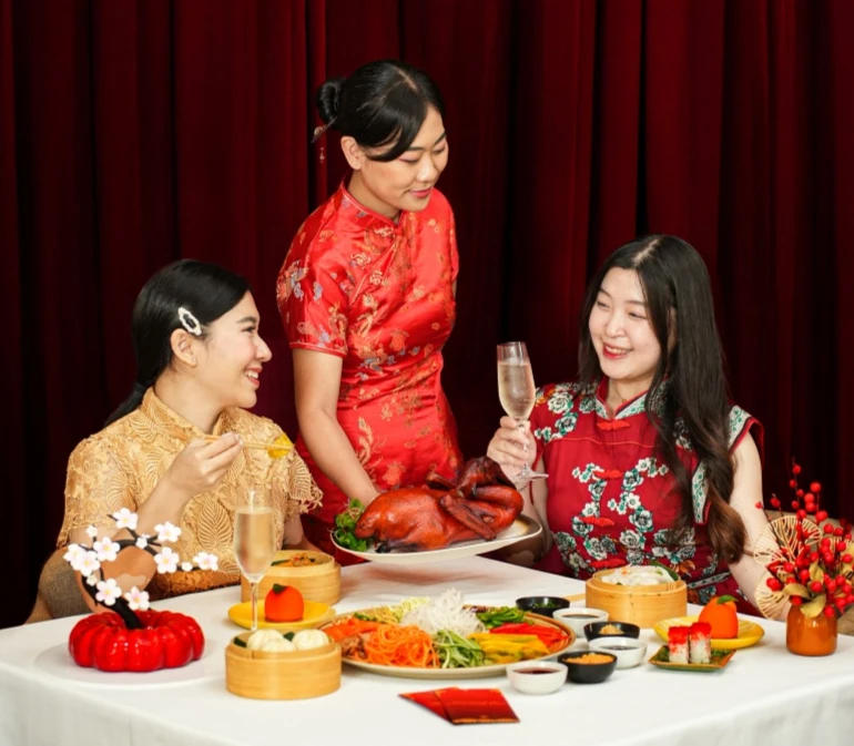 A lavish Chinese New Year buffet showcasing a selection of Asian dishes thoughtfully curated to create warmth and indulgence in this special celebration. The evening will feature an exhilarating lion dance (barongsai) performance, symbolizing good fortune and protection, together with a charming fortune teller experience to bring an element of wonder and tradition.