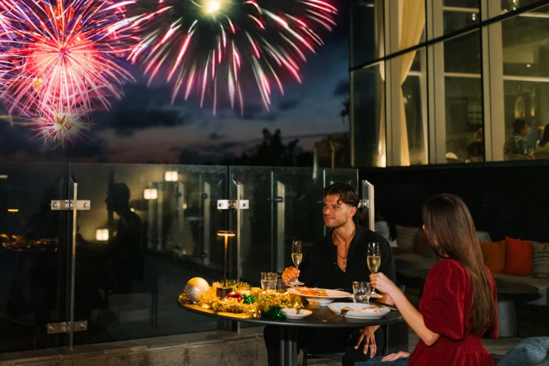 -Oceanfront Countdown at Uma Beach House . The same evening, a lively seaside celebration with welcome canapés, vibrant performances, and prime views of fireworks over the water. Entrance IDR 200,000++ per person, inclusive of welcome canapés.