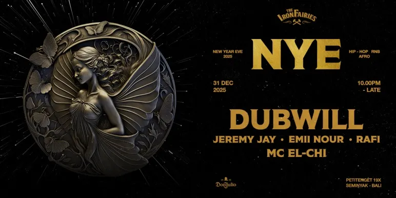 Dance your way through the final night of the year in a music-filled celebration featuring special performances from DJ Dubwill, Jeremy Jay, Emii Nour, and Rafi, who will take turns behind the decks playing hip-hop, R&B, and Afro beats that keep the energy alive until dawn. Join the countdown, raise a glass with your closest ones, and step into the new year with lively energy and unforgettable moments at The Iron Fairies Bali.