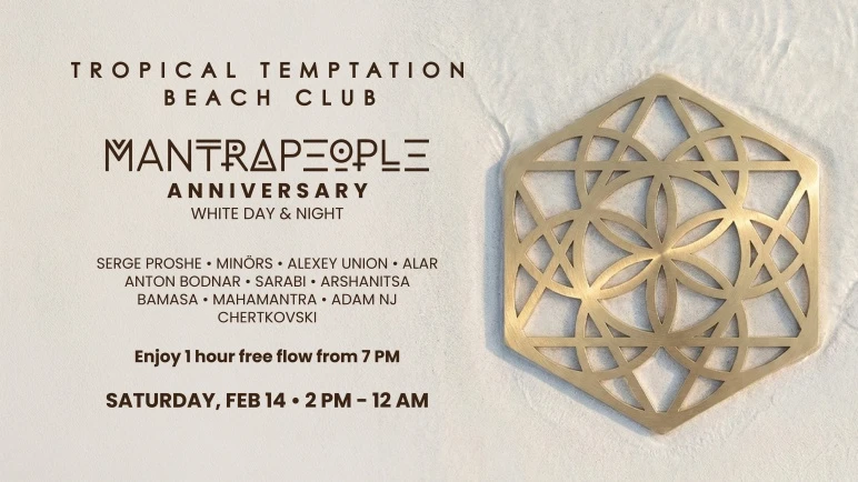 On Saturday, February 14, Tropical Temptation Beach Club at Melasti Beach becomes the setting for a refined yet pulse-driven celebration as Mantrapeople marks its anniversary with a White Day & Night experience, running from 2 PM until midnight. This anniversary marks a defining moment for Mantrapeople, a collective celebrated for its conscious, community-driven electronic music culture. Set against ocean views and dramatic cliffs, the experience evolves naturally from daytime grooves to immersive after-dark energy.
