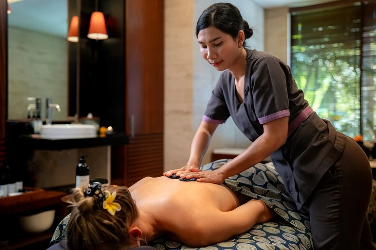 The first hour focused on the body wrap and scalp massage, which felt incredibly soothing and precise. The therapist’s attentiveness created a sense of total comfort, while the aromatic oil infused a natural, calming scent into the air. Every motion felt intentional and harmonized, creating a rhythm that invited us to fully relax. After a quick shower to refresh between phases, the second hour transitioned into a full-body massage designed to dissolve deep-seated tension. Using a combination of traditional Balinese techniques and firm elbow strokes, the therapist applied just the right amount of pressure to release tight muscles. The signature use of Lapis Lazuli stones—gently heated and glided across the body—added a layer of therapeutic warmth, enhancing relaxation and grounding our energy flow.