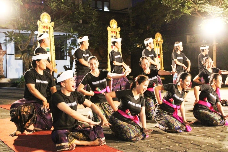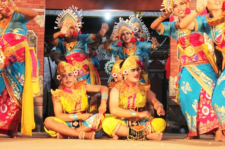 Traditionally, the dance was a social bridge between villages, allowing young men and women to meet, sing, and dance together. The choreography mirrored the balance between masculine and feminine energies: men would perform seated, cross-legged movements inspired by Pencak Silat martial arts, while women knelt gracefully, weaving patterns with their hands in rhythmic elegance. Over time, Janger evolved into a Bali-balihan dance, performed for entertainment and to enrich ceremonies. Its accessible form, joyful spirit, and harmonious interplay of voices made it one of the most popular Balinese performances, both locally and abroad.