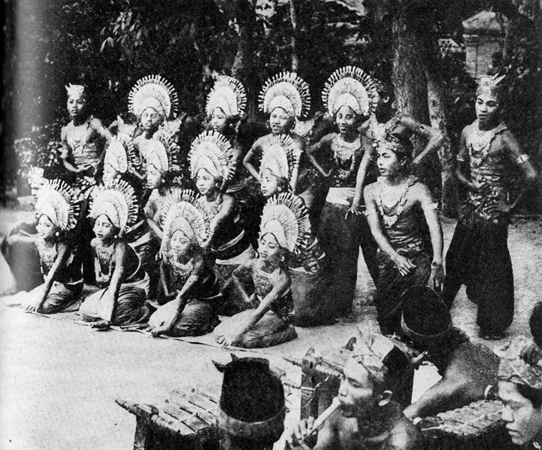 Janger as a stage performance emerged around the 1930s, making it one of the relatively modern Balinese dance traditions. It was described by Walter Spies and Beryl de Zoete in Dance and Drama in Bali as a lively collaboration between ten pairs of male and female dancers, often accompanied by the geguntangan or gender wayang ensemble.