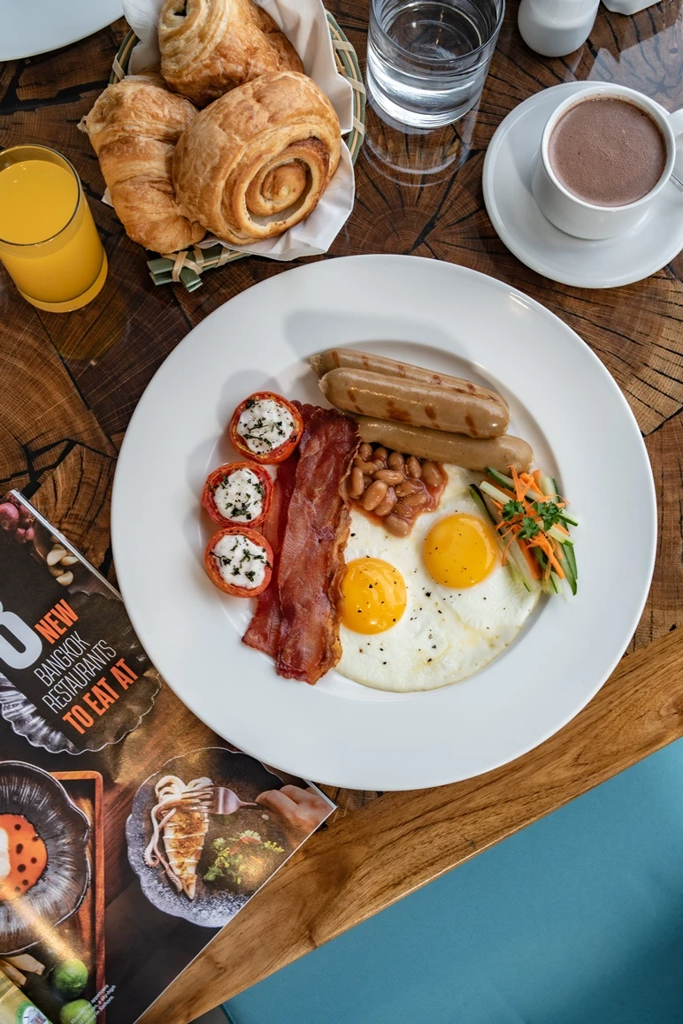 Breakfast at Together & Co features a complete comfort buffet. The spread includes pastries, cold cuts, yoghurt, fruit, sausages, bacon, baked beans, homemade potato chips, congee, jaje such as bubur injin and bubur sumsum, an egg station and more. The variety keeps things interesting and the flavors are reliable from plate to plate.