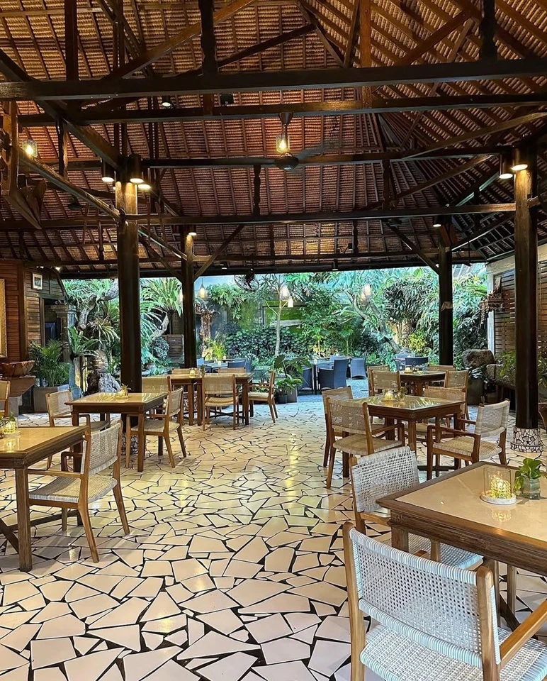Dining at Gong feels like stepping into a peaceful Balinese ritual. Set inside a traditional pavilion surrounded by tropical greenery, the restaurant focuses on refined Balinese cuisine made with market-fresh ingredients and aromatic local herbs. Each dish is thoughtfully prepared and beautifully presented, matched by attentive and graceful service. This is a place for slow dining, intimate conversations, and appreciating the depth of Bali’s culinary heritage.