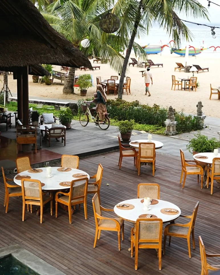 Set right on Sanur Beach, this open-air restaurant delivers a timeless dining experience. You can dine in a traditional wantilan pavilion or under shady trees with the ocean just steps away. The menu features authentic Indonesian dishes alongside international classics, all prepared with a home-cooked touch. Gentle sea breezes, thoughtful service, and a calm atmosphere make this one of Sanur’s most romantic and relaxing places to eat.