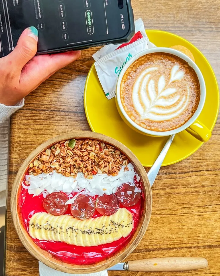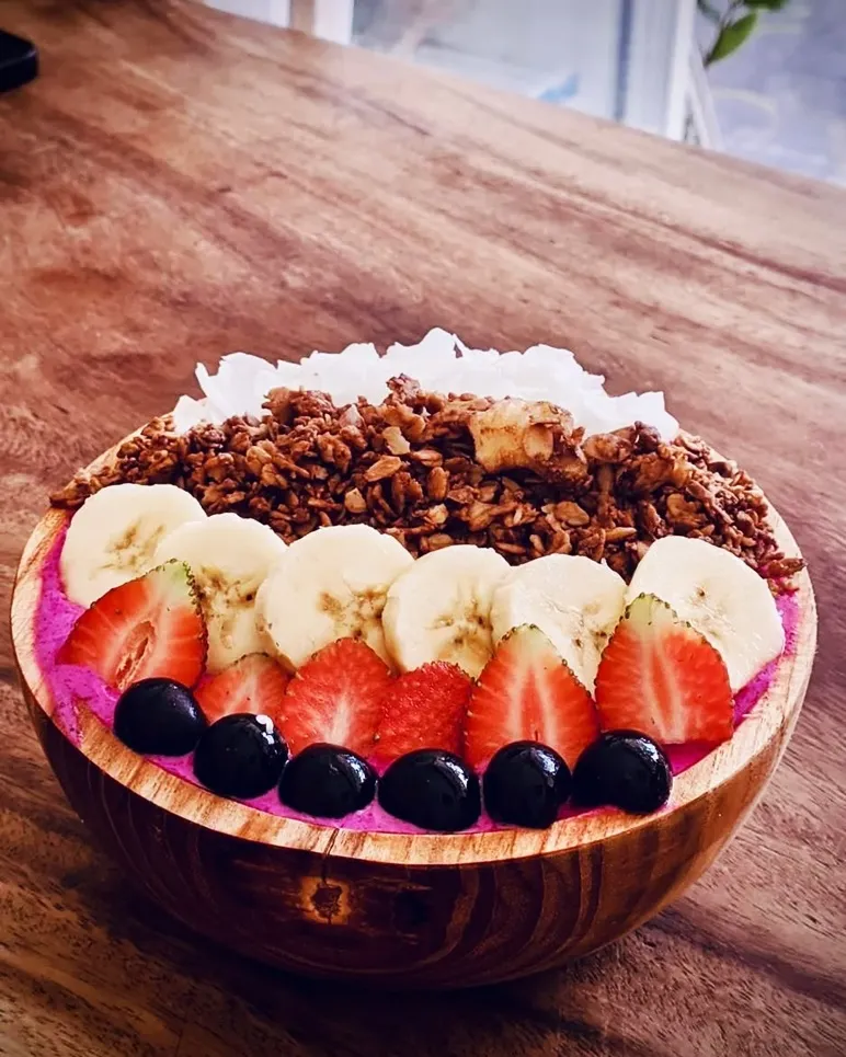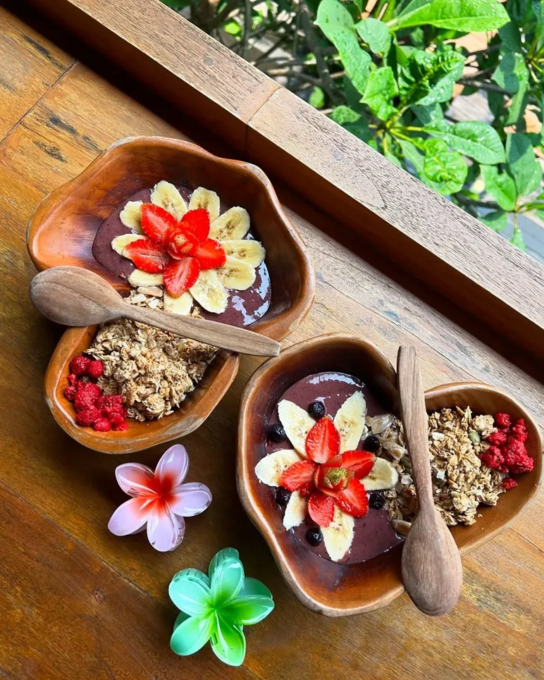 Green Guru is a long time go to for Bali bowl lovers. Known for vegan friendly recipes and their own line of granola, peanut butter, and nut mixes, the brand has grown into a cult favorite. Guests often fall deeply in love with the peanut butter bowl, while others swear by the açai bowl that finally tastes like more than blended banana. Expect cold, thick textures and beautiful toppings arranged with care. Loyal fans visit year after year because the bowls always impress and the staff always keeps things warm and welcoming.