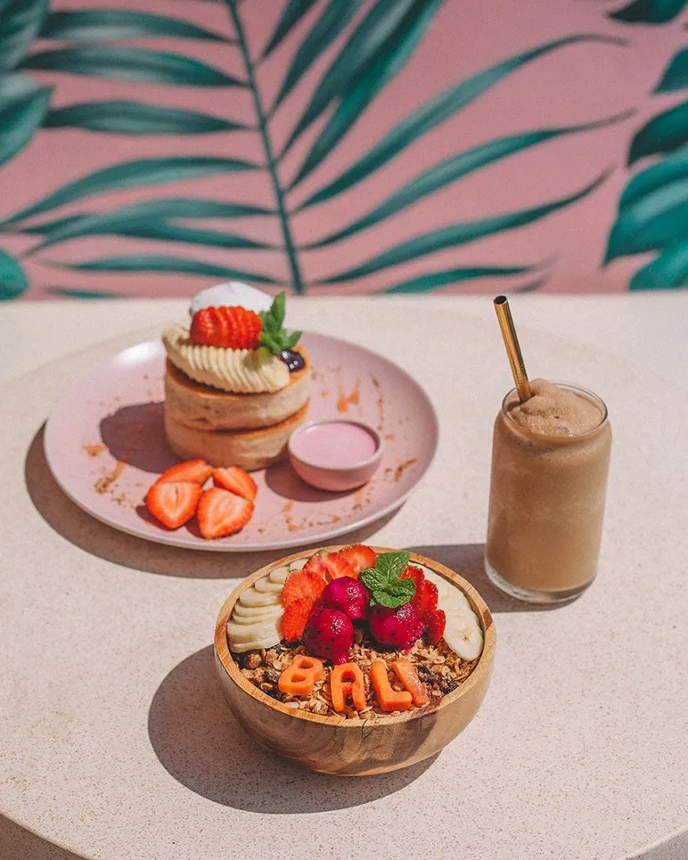 KYND Community is the plant based icon of Seminyak. Famous for its pink interiors, friendly atmosphere, and customizable smoothie bowls that arrive with your name written on top, this cafe continues to draw crowds from sunrise to lunch. The Lotus Biscoff and Pistachio bowls are huge crowd pleasers. Many visitors pair their bowls with crisp sourdough avocado toast or fluffy pancakes. Service is fast even when the place is packed from corner to corner. A boutique next door adds extra fun for anyone who loves a little shopping spree after breakfast.