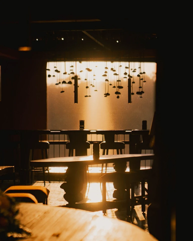 For those seeking a tranquil sunset experience accompanied by Balinese music, Naga Bar on the rooftop of Sthala Ubud offers an ideal retreat. Overlooking the Wos River, this first rooftop bar in Ubud provides a serene atmosphere to unwind, sip on a variety of beverages, and witness the sun's descent.